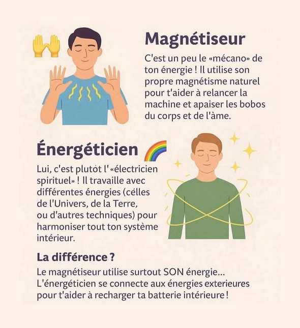 Les soins que je propose utilisent différentes techniques : magnétisme, énergétique, bioénergie, sonothérapie ou lithothérapie. Ces pratiques permettent d’œuvrer en profondeur, jusque dans la mémoire cellulaire, afin de libérer des blocages et des traumatismes du passé qui engendrent souvent des douleurs physiques actuelles.