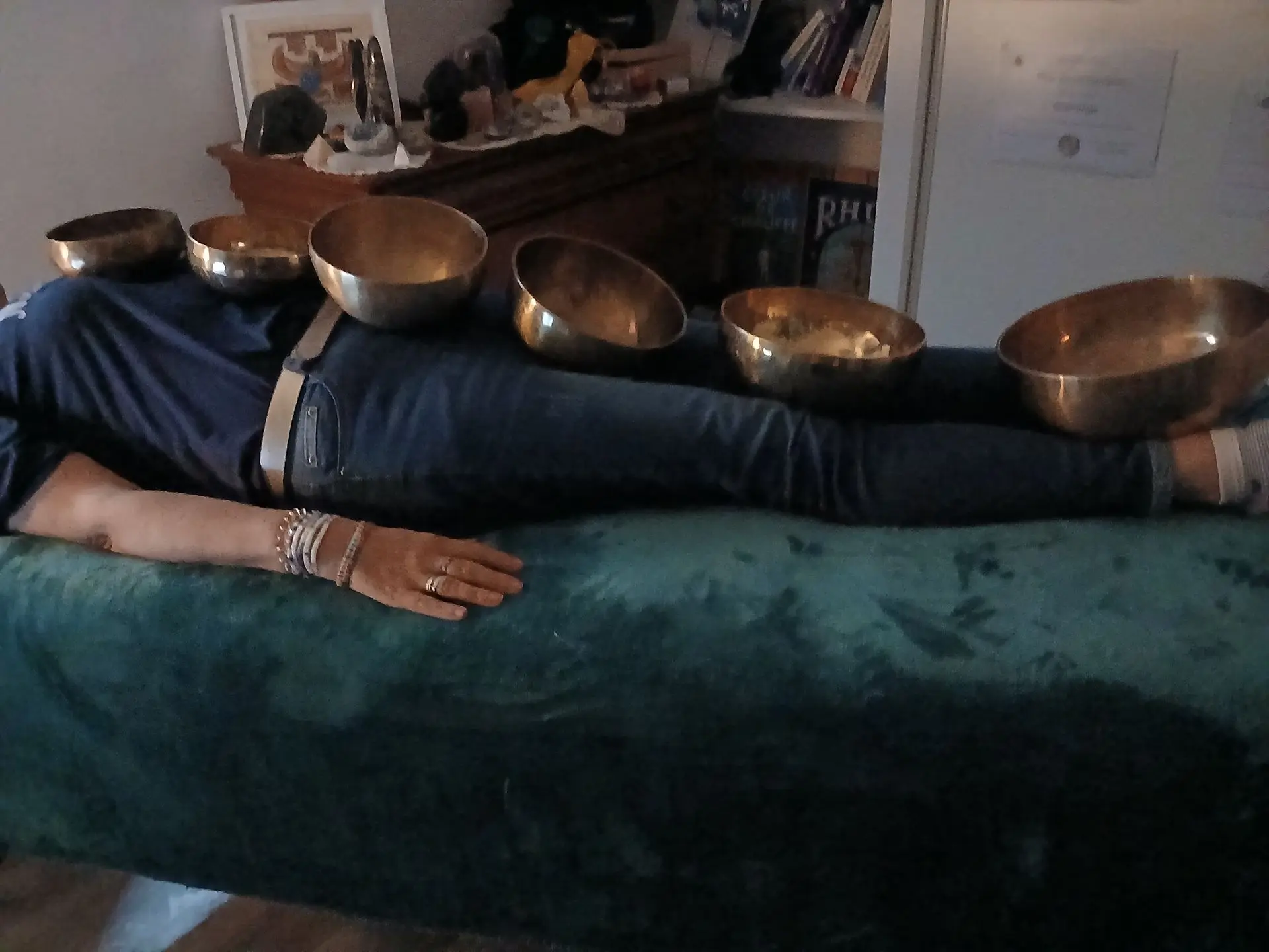 Le praticien fait résonner différents bols autour de vous, créant une atmosphère propice à la relaxation et à la méditation.
